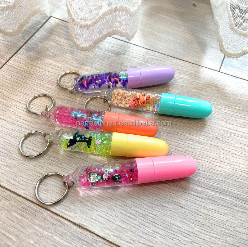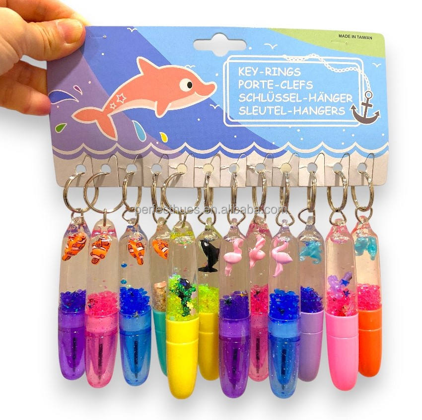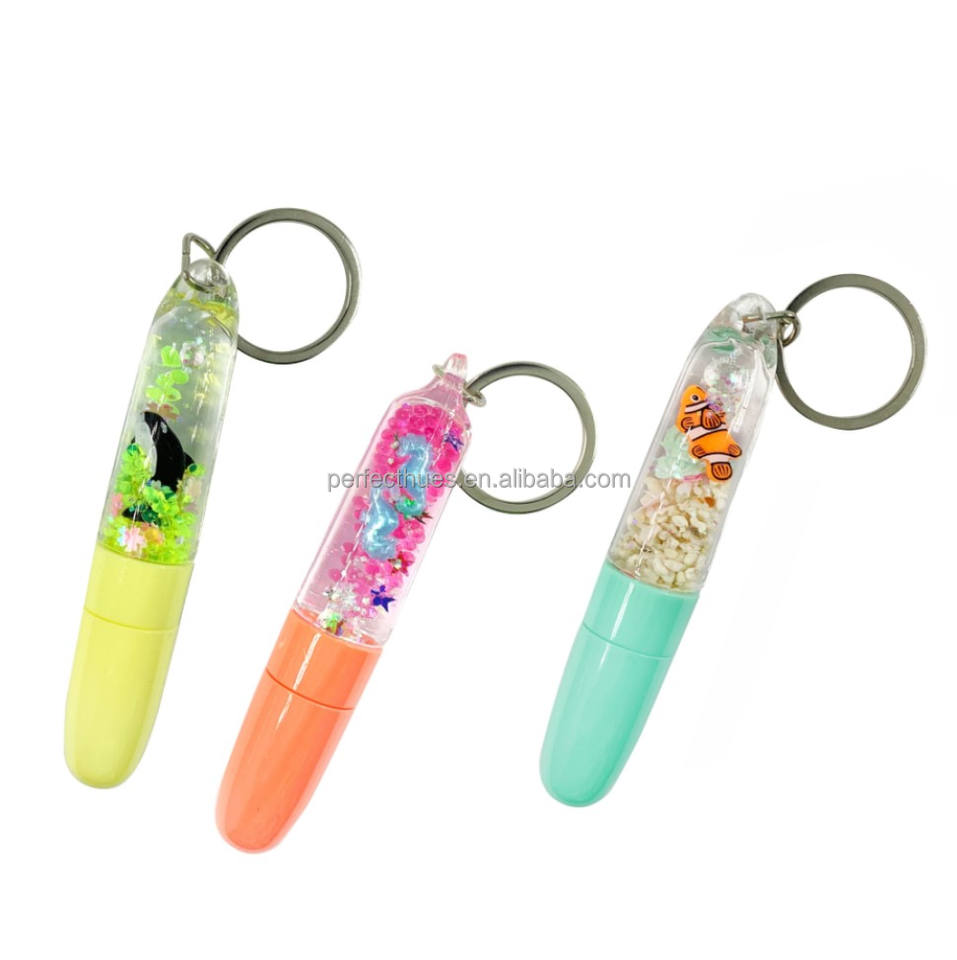 Glitter Beads Liquid Motion 3D Floater Ballpoint Pen Keychain 0.5mm Plastic for Girls