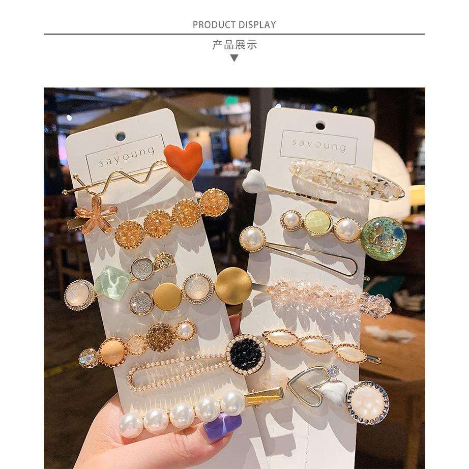 Glitter Crystal Geometric Hairpin,Handmade Pearl Hair Pins,Elegant Metal One-word Clip Set Hair Accessories for Women and Girls