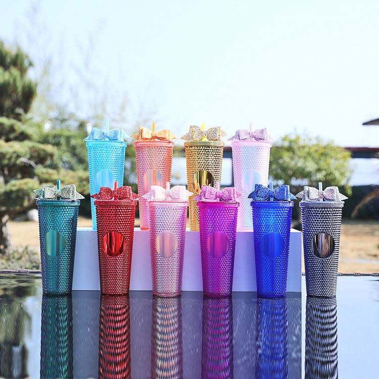 Item name:durian Diamond Tumbler Water Bottle Coffee Cup With Bow Tie Straw