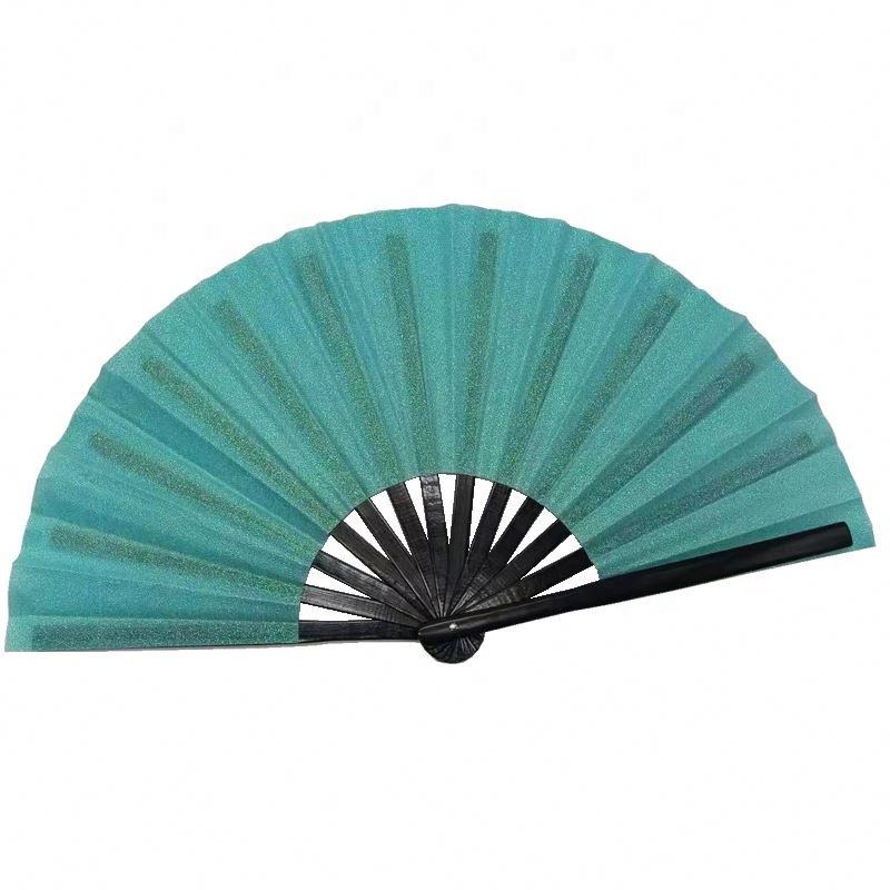 Glitter Large Rave Folding Clack Hand Fan with Holster Festival Fan Party Black Galaxy Glitter Glam Hand Fan