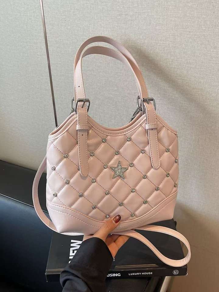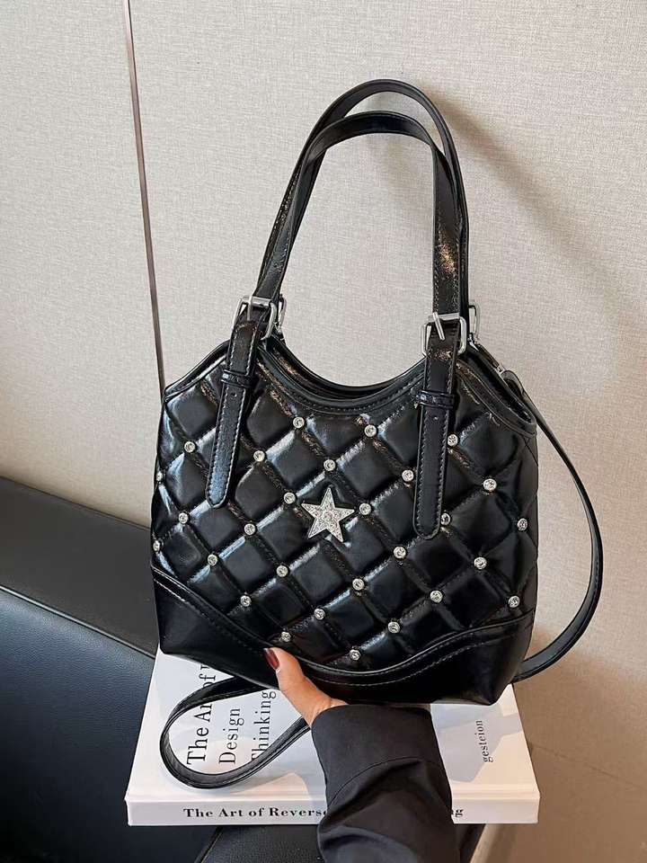 Glitter Quilted Diamond Star Handbag Top Handle Crossbody Bag for Women