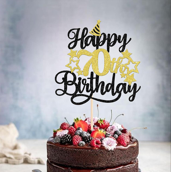 Glittering Cheers to 70 Years Cake Topper with Star Hat 70th Birthday and Anniversary Party Decoration for Seniors and Elders