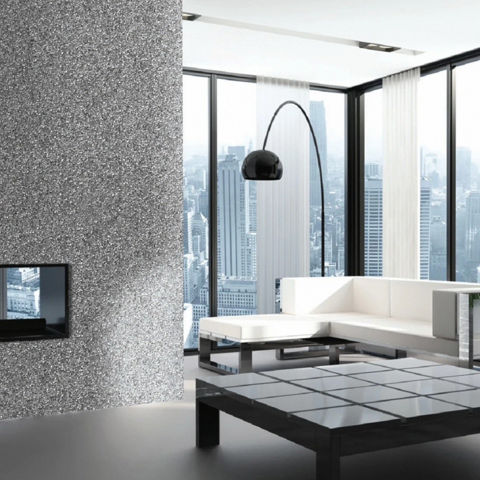 Glittex Classy Look Glitter Wallpaper PM 460/ 12 Roll Modern Silver Sparkle Interior Wall Covering 9.36 m2