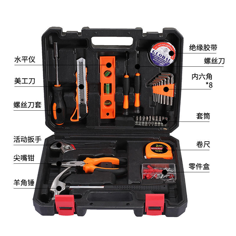 Global Tool Set 37x28x8cm Hand Tool Kit For Home Repair With Socket Drive 1/4 In Carbon Steel JS-TSD-01