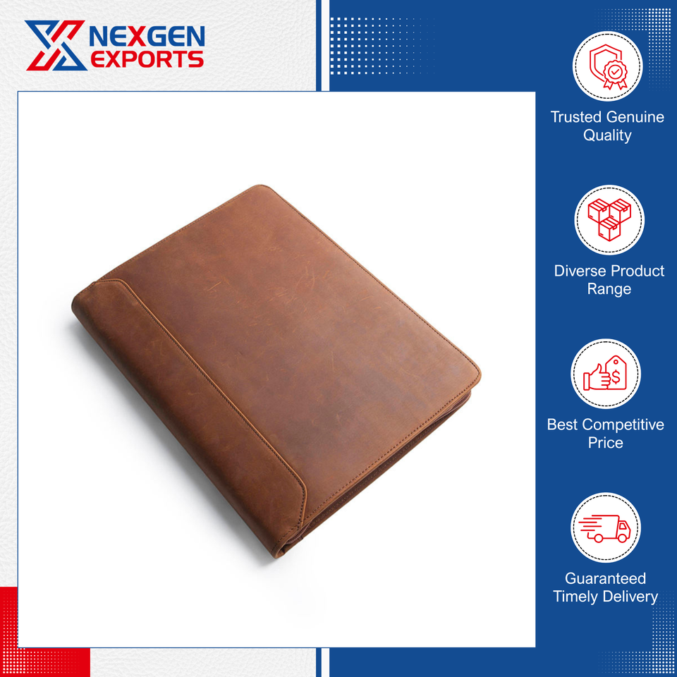 Product Name:Leather 3 Ring Binder Portfolio Organizer Zippered Padfolio