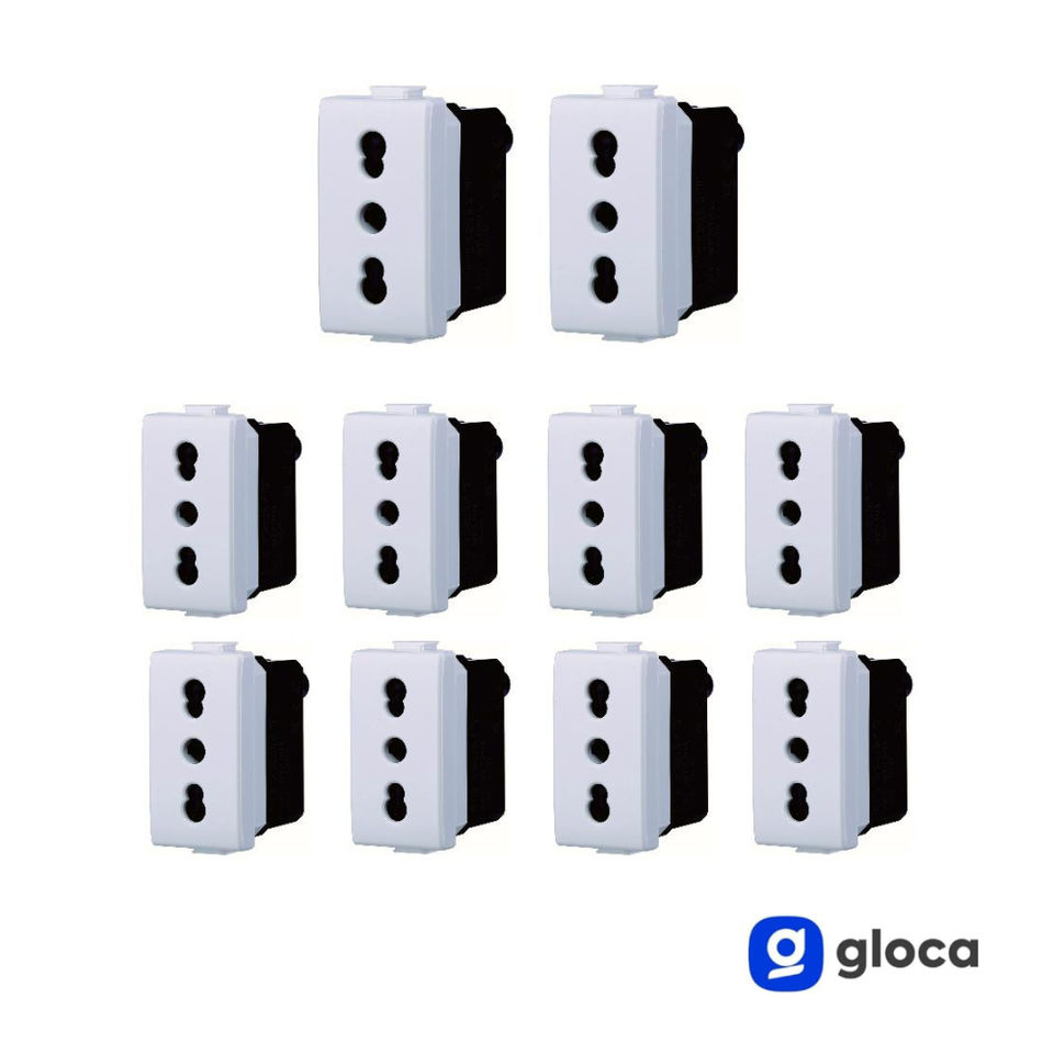 Gloca 10-Pack 2P+T 16A Wall Sockets 230V Plastic Standard Grounding For Matix Series