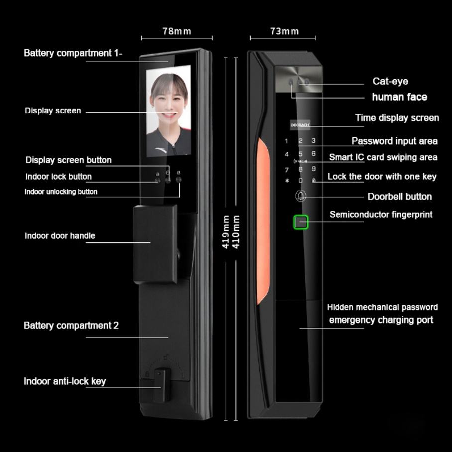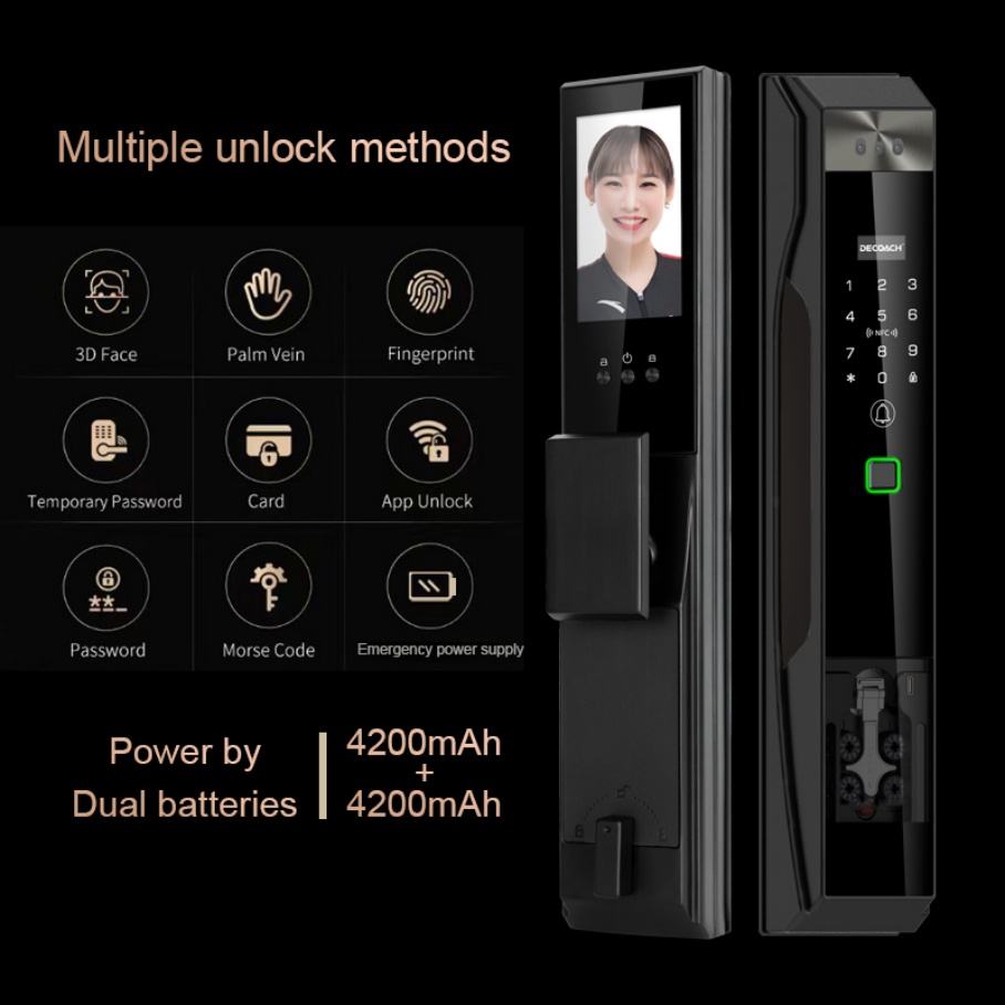 Unlock way:Phone+Face+Palm+Fingerprint+Password +Card +Mechanical password