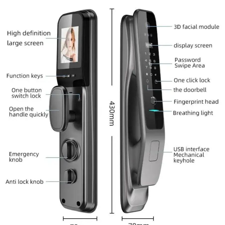 Unlock method:Face/fingerprint/digit password/card/app/key/Temporary Password