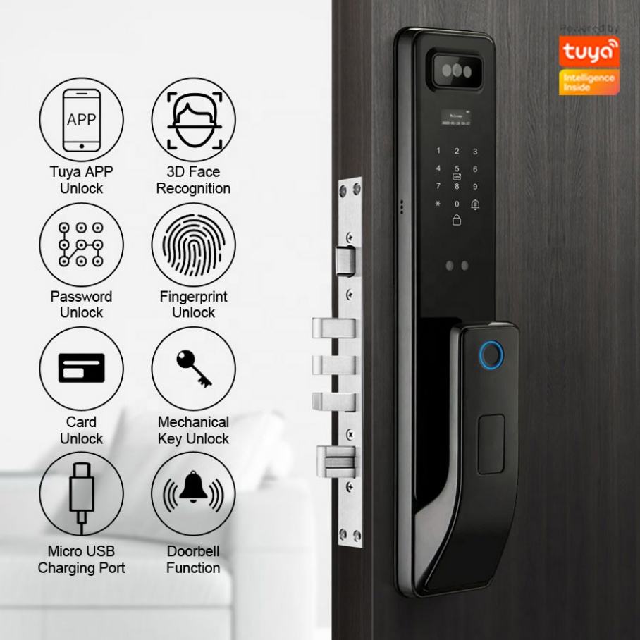 Unlock way:Face+Fingerprint + Password + Card + Key+App