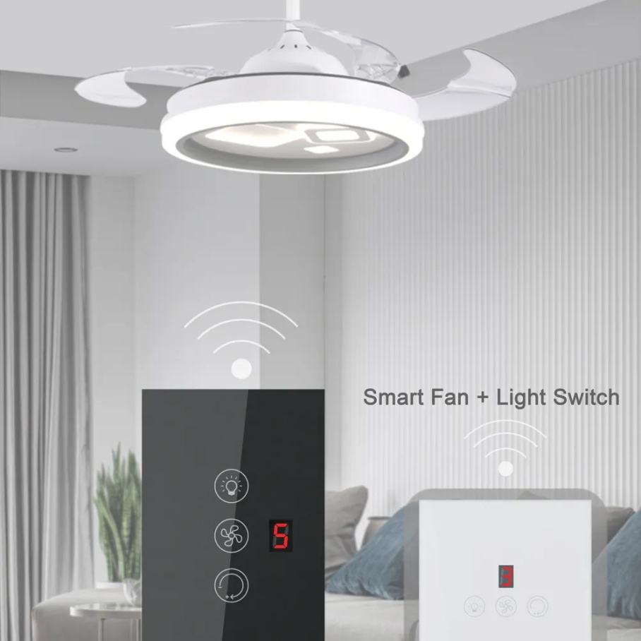 Glomarket Smart Life for WiFi 4-Gang Fan Light Touch 3-in-1 Switch with 5-Speed Adjustment for Alexa & Google Home