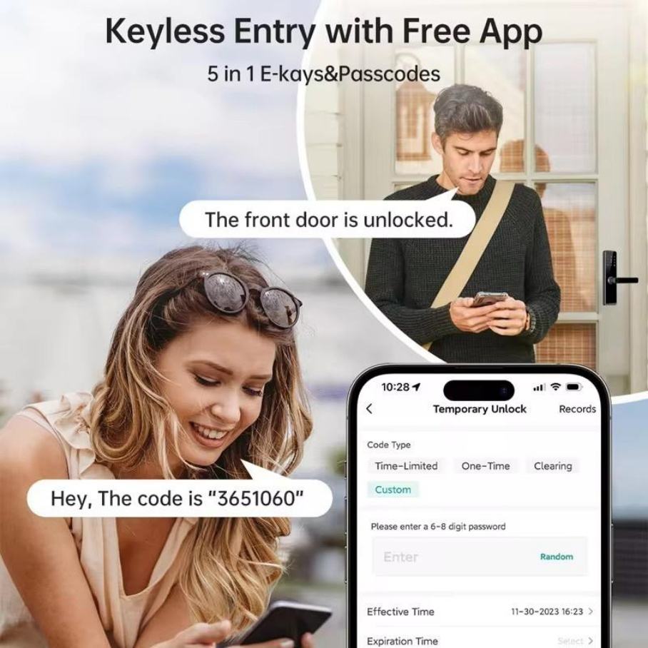 Unlock way:Phone +Fingerprint + Password + Card + Key
