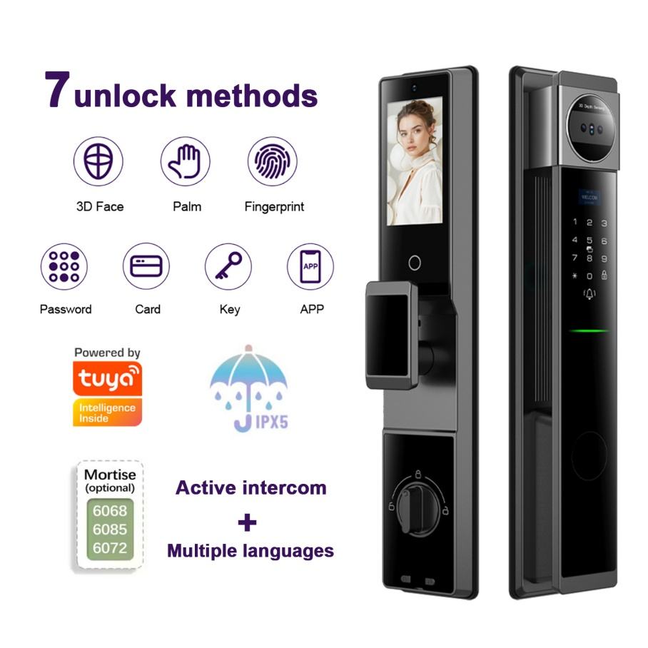 Unlock way:APP/face recognition/password/fingerprint/palm vein/card/key