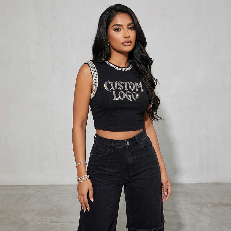 Glory Custom High Quality Rhinestone Tank Top New Trendy Vintage Style 100% Cotton Soft Breathable Fabric For Unisex Street Wear