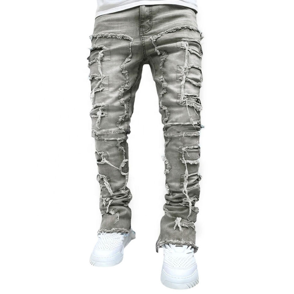 Glory Custom Men's Slim Fit Jeans Wholesale Casual Trendy Streetwear Lightweight Distressed Denim Pants Durable Workwear