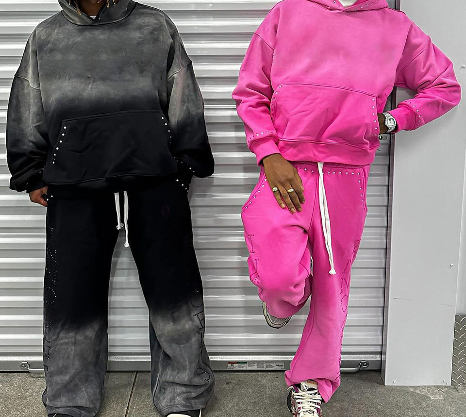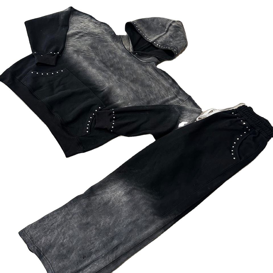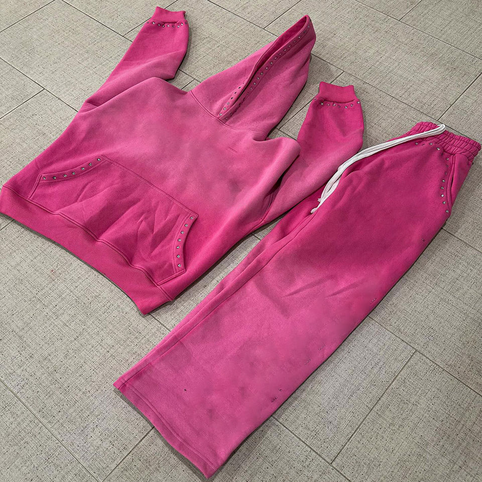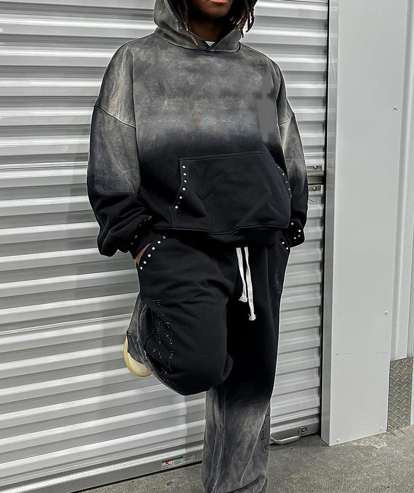 Glory Custom Sun Fade Rhinestone Tracksuit Premium Quality Pullover Hoodie With Drawstring Joggers For Streetwear For Unisex