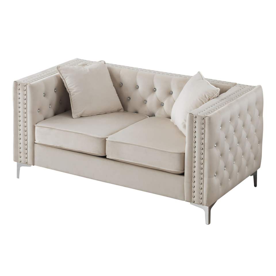 Glory Furniture Paige G827A-L Ivory Loveseat Stylish European Tufted Fabric Sofa for Living Room Apartment Hotel Workshop Gym