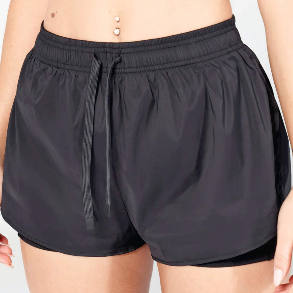Gloss Fabric 95% Polyester 5% Elastane Regular Women Black Glaze 2 in 1 Shorts Roll Waistband with Silicone Gripper