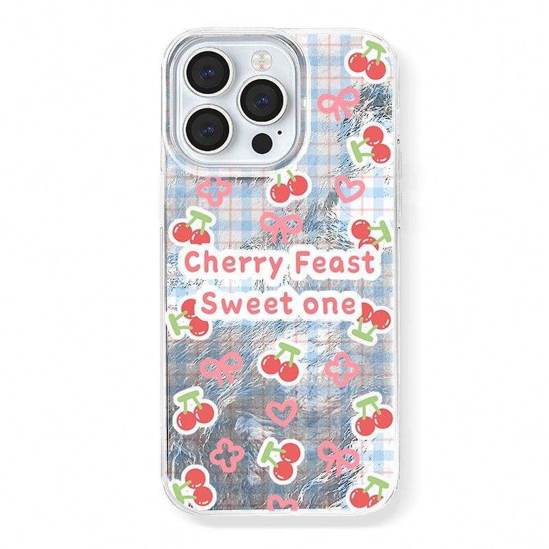 Glossy Cover INS Korean Y2k Pink Bow Cherry Phone Case for iPhone 16 14 15 Pro Max 12 13 11 Pro X XS XR 7 8 Plus Glossy Cover