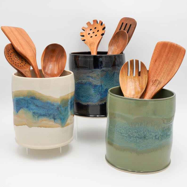 Glossy Finish Ceramic Utensil Holder Crock | Kitchen Cooking Tool Storage | Stylish Countertop Organizer