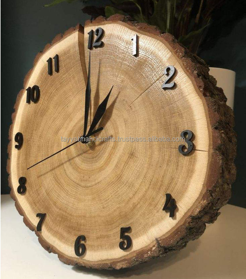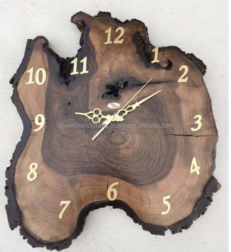 Glossy Finishing Wood Epoxy Wall Clock Antique Style Wood Epoxy Clocks Natural Live Edge Wood Epoxy Clock