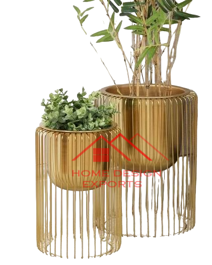 Latest Design Glossy Golden Finished Casting Aluminum Metal Planter Vase Unique Design Home Hotel Decor Floor Planter