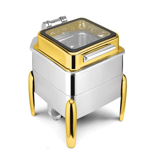 Item Name:Glossy Golden Square Chafing Dish With Fuel Gel Stand