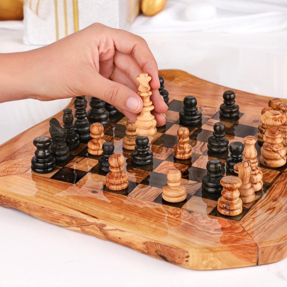 Glossy Handmade Olive Wood Chess Set Board-Complete with Artisan-Crafted Wooden Chess Set ArtisRaw CG010