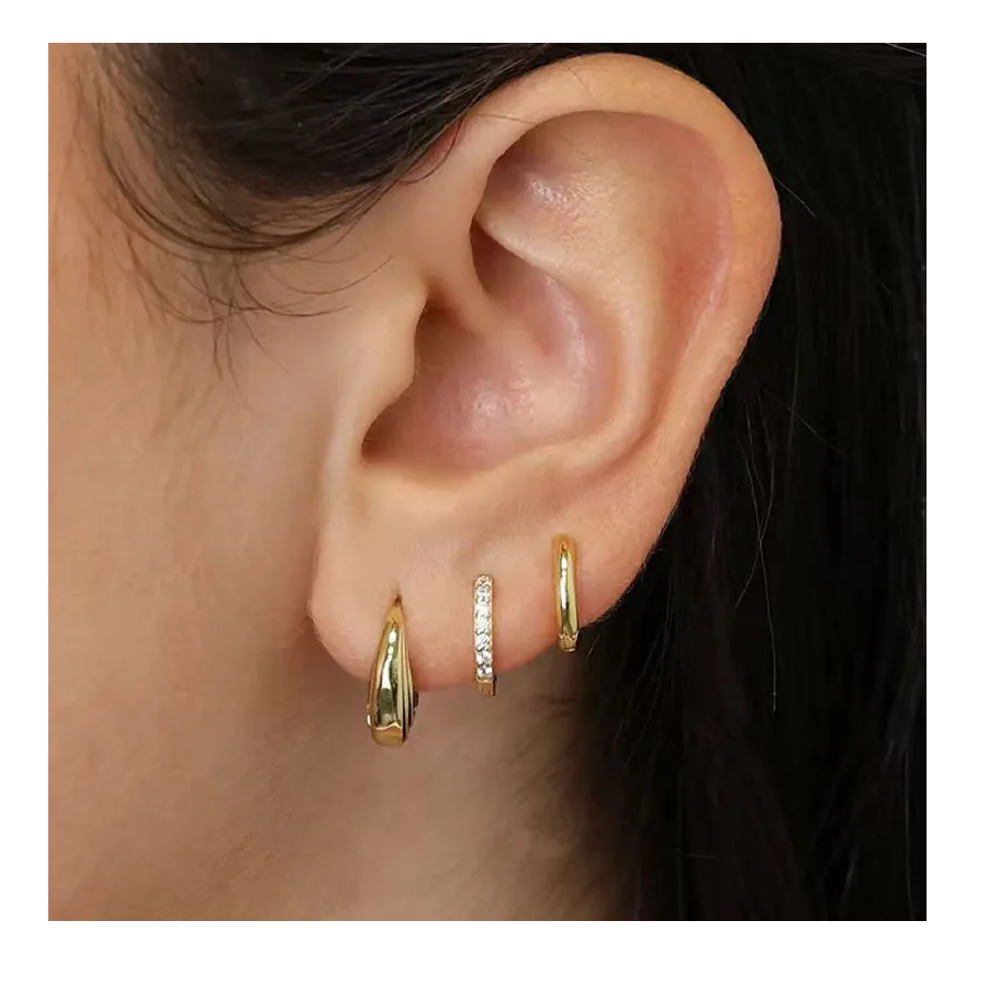 Trendy Vintage Style 925 Silver Hoop Earrings Fine Quality Stainless Steel Stud Design with Gold Pearl Glossy Piercing Accessory