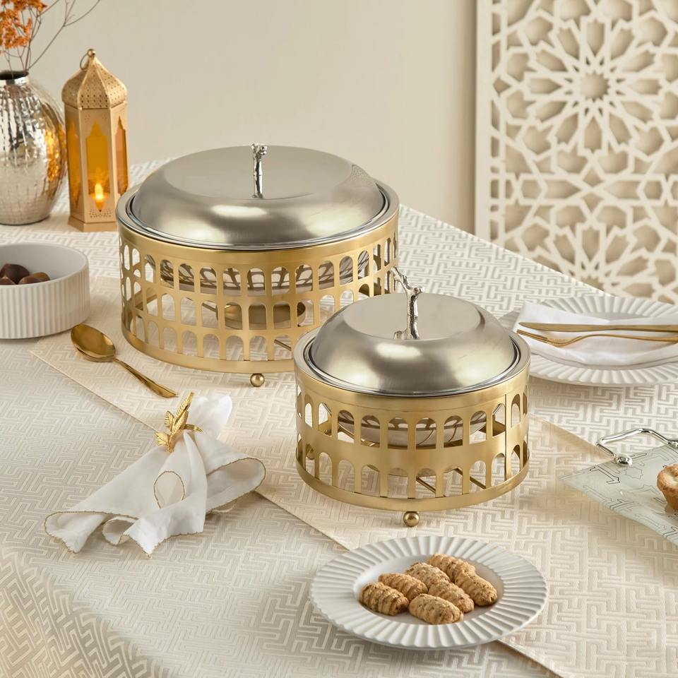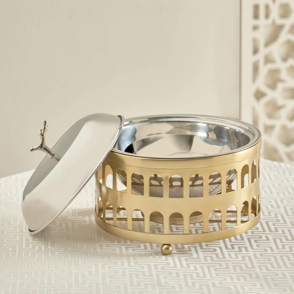 Glossy Metal Casserole Dish with Gold Laser Cut Design Classic Stylish Dining Table Decorations for Wedding Events