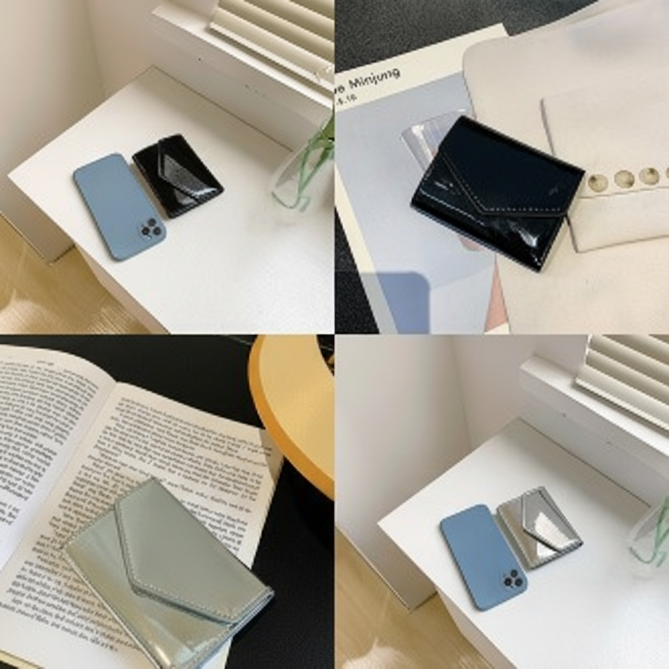 Glossy Mini Snap Button Plain Enamel Wallet Card Simple Cash Glossy Mini Snap Button Plain Enam