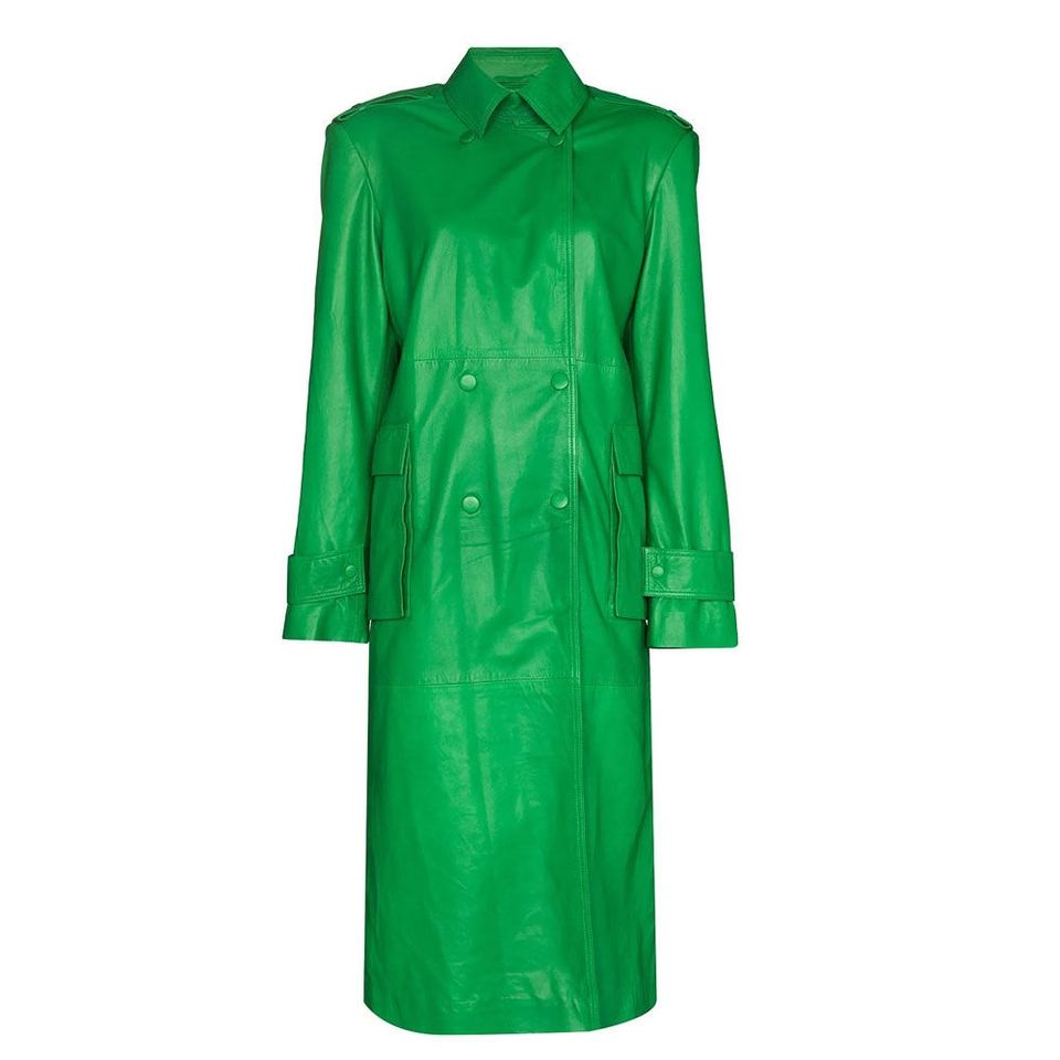Glossy Genuine Leather Casual Thin Overcoat for Women Plus Size Knee Length with Double Breasted Design and Belt