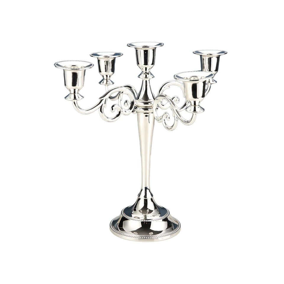 Glossy Silver Plated Candelabra Structured 5 Heads Party Tableware Decoration Candles Stick Holder Golden Victorian Candle Stand