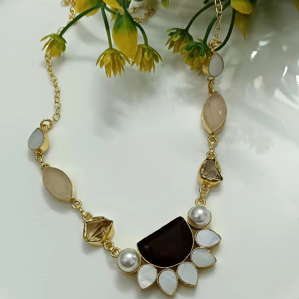 Glossy Stone Necklace Set Crystal Healing Style Brass Jewellery for Women for Party or Engagement Bulk Product