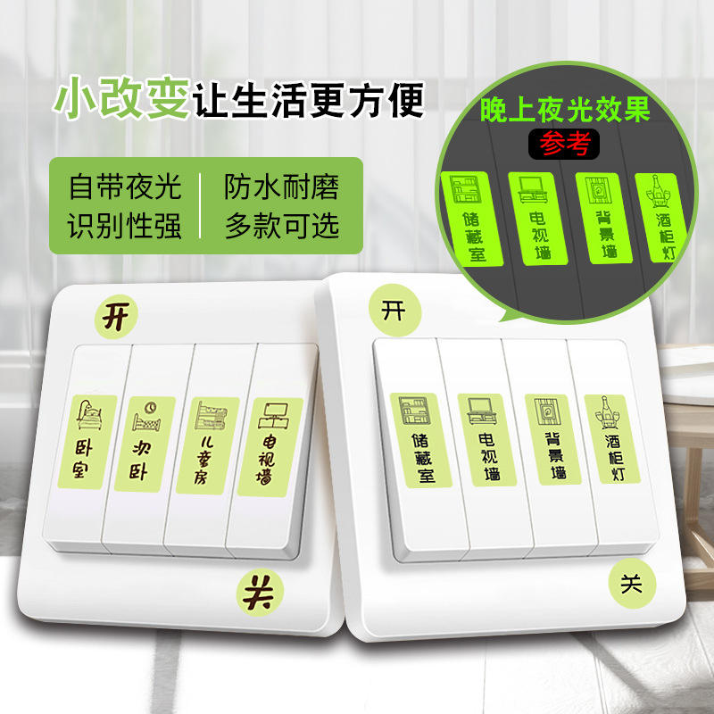 Glow In Dark Switch Stickers 4 Way PVC Waterproof Labels For Home Room Identification Night Light Effect