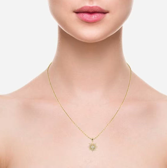 Glowing Sun Design Chain Necklace 14k Yellow Gold IGI Report VVS Lab Grown Diamond Certified Wholesale Jewelry For Women DS0424