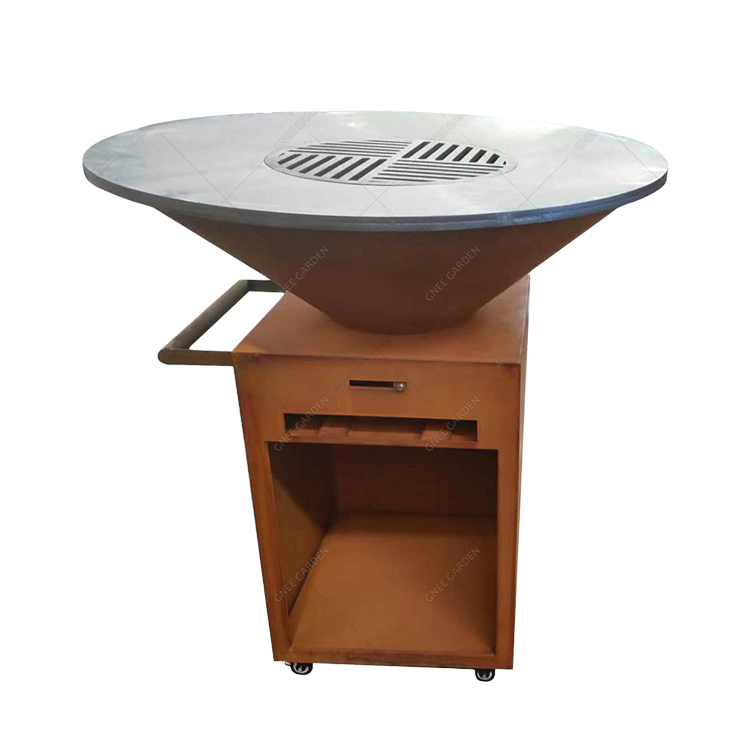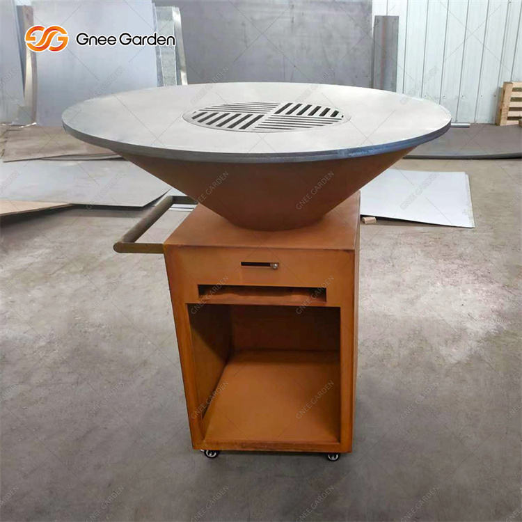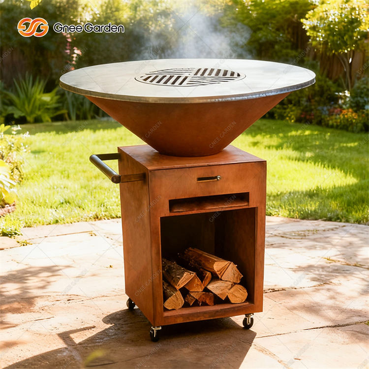Gnee Garden Premium Modern Corten Steel BBQ Grill Firewood Auto Ignition Rusty Finish Folding Design CE Certified for Outdoor