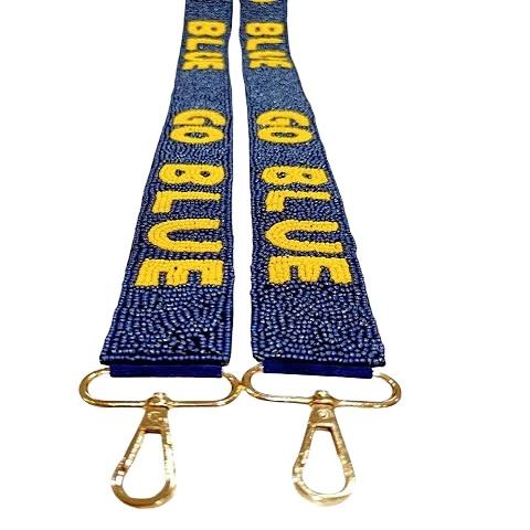 Go Blue Cotton Glass Beaded Sports Style Purse Strap Handmade Stylish Bag Accessory with Customization Perfect for Gameday