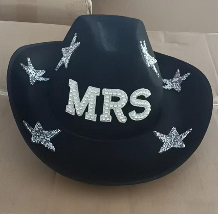 Keywords:Crystal Star Pearl BRIDE MRS WIFEY GROOM Letter Pink Cowgirl Hats