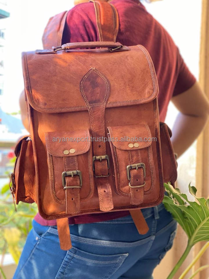 Goat Leather Backpack Laptop Backpacks Handmade Bags 11*15 Inch