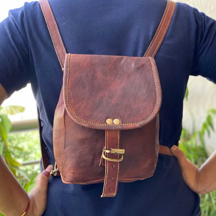 Goat Leather Stylish 8 Inch Handmade Backpack Unisex Bag