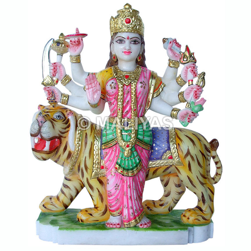 Goddess Durga Marble Statue | Hand-Painted Durga Maa Marble Murti Manufacturer – Maliyas
