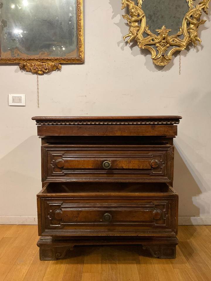 solid mahogany chest of drawers with wood carvings.