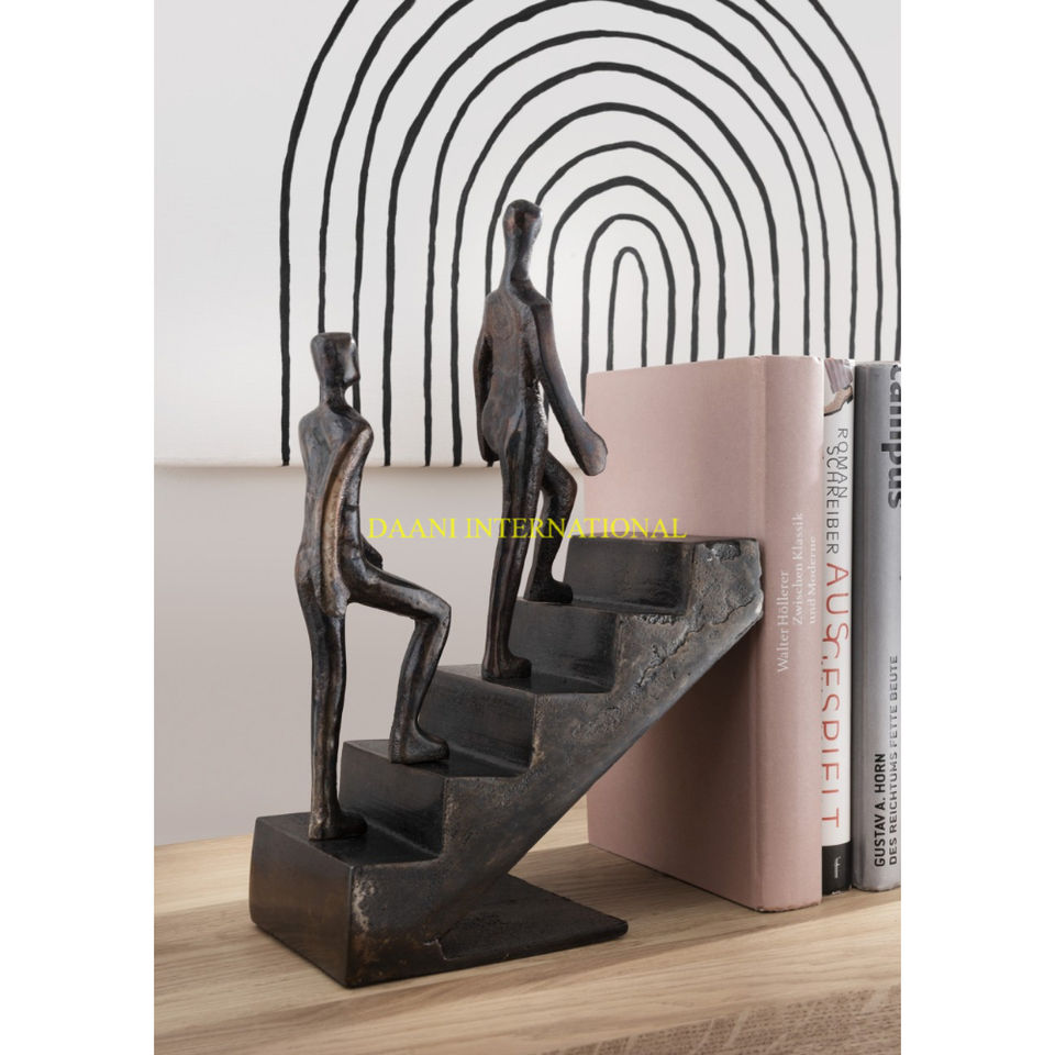 Gold Abstract Staircase Bookend Modern Book Holder with Climbing Figures Decorative Sculpture Bookend for Home Office Desk Shelf