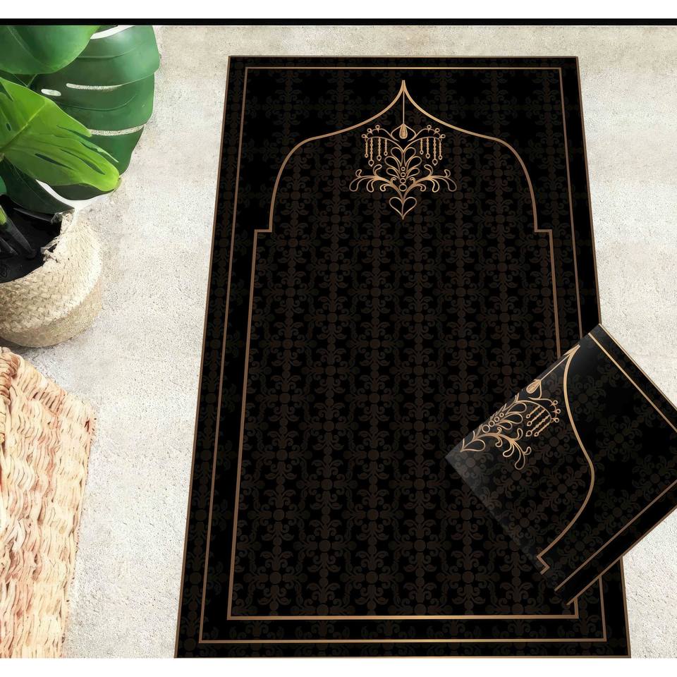 Gold Accent Islamic Prayer Rug: Non-Slip Religious Gift, Printed Rug,Nonwoven Thin Rug