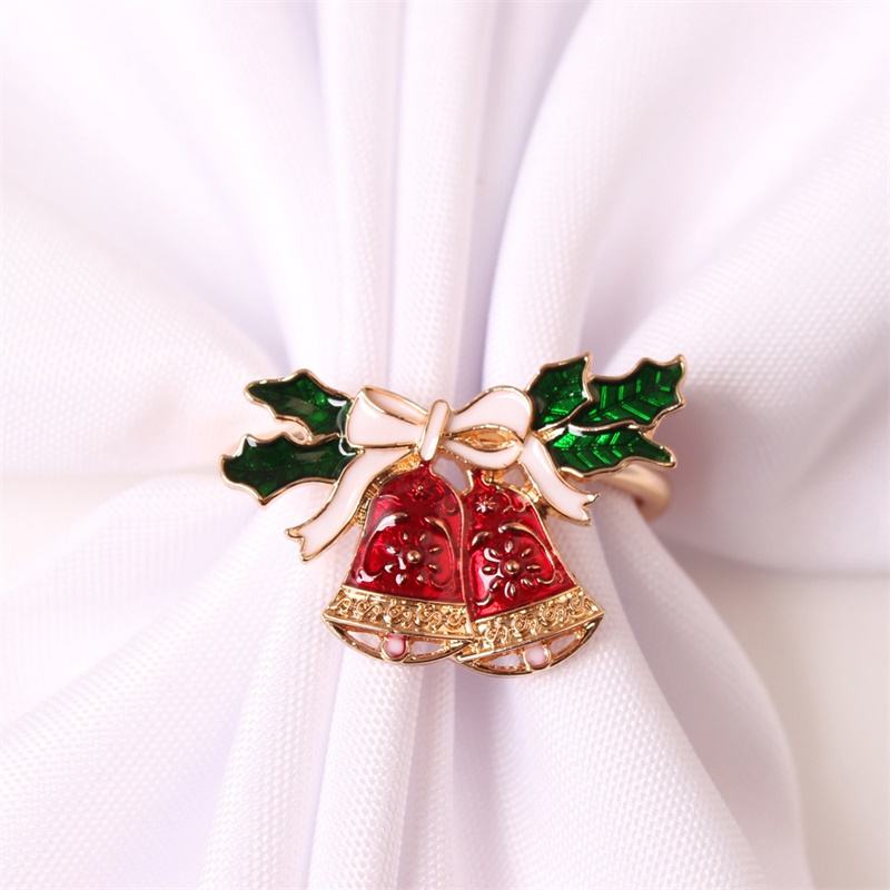 Gold Alloy Napkin Ring Holder for Wedding Party Christmas Festival Snowman Elk Bell Tree Christmas Gold Leaves Stars for