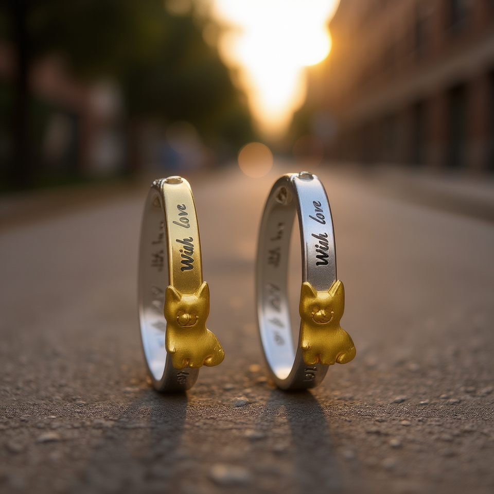 Gold And Silver Bicolor Hoop Earrings With Cat Charm With Love Engraved For Women Gift Cute Animal Design E275
