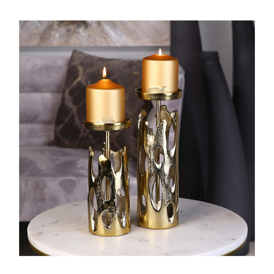 Home Decor Gold Antique Aluminium Candle Pillar Holder
