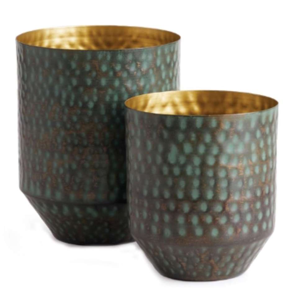 Gold Antique Aluminium Flower Vase Set of 2 Garden & Indoor Plant Decoration Planter Wedding Table top Hammered Metal Vase