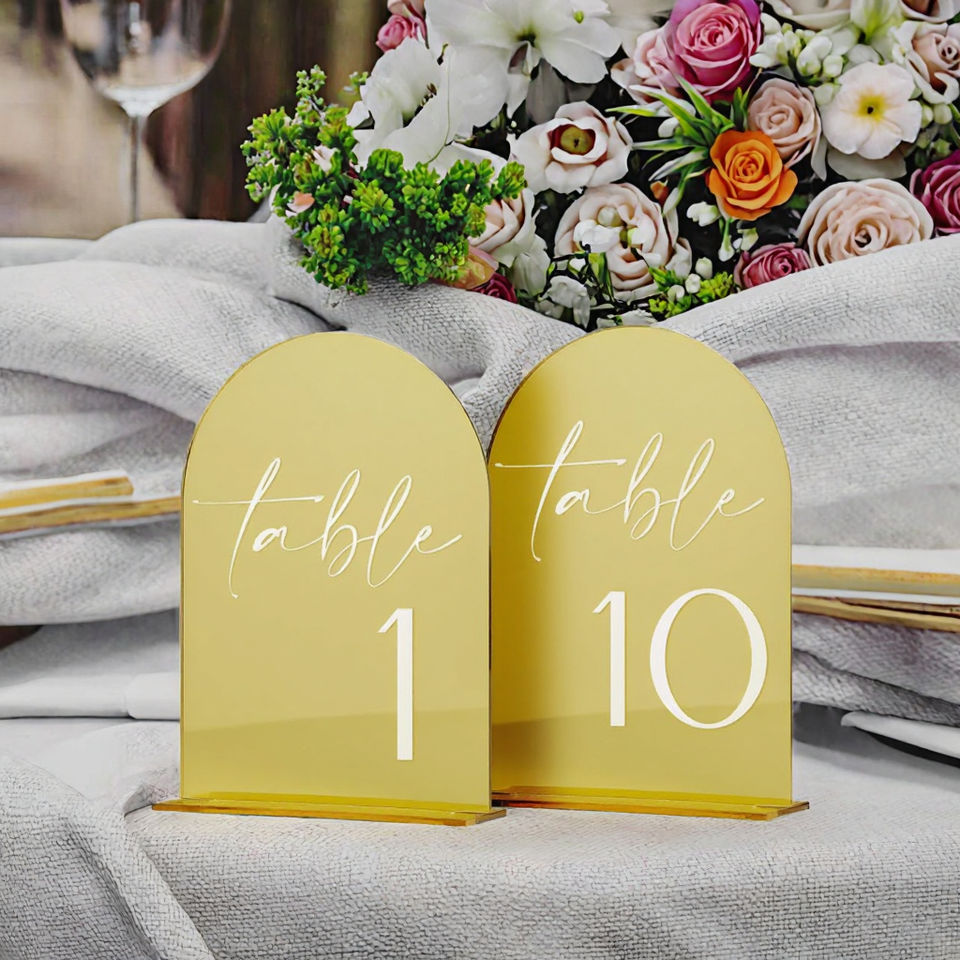 Gold Arch Acrylic Eco-Friendly Table Numbers 1-10 for Wedding & Mother's Day Centerpiece Decor Modern Guest Party Signs