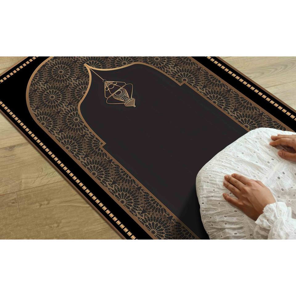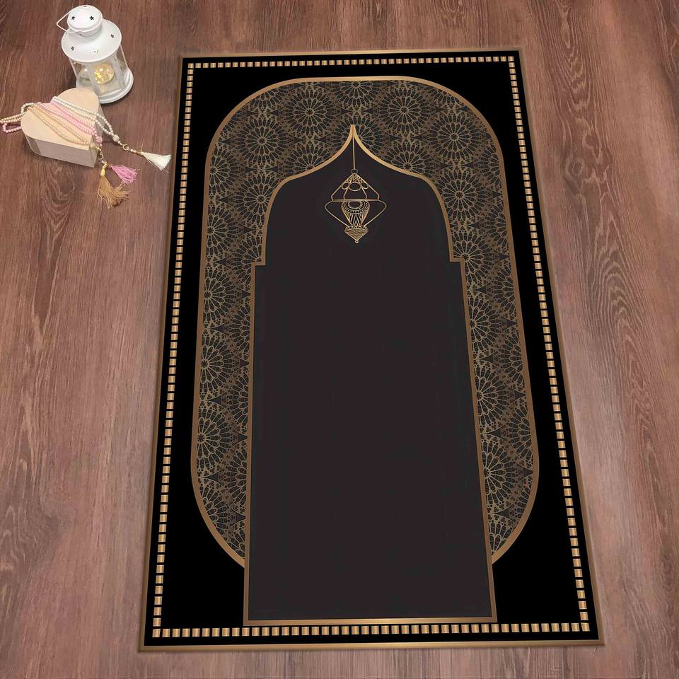 Gold & Black Islamic Prayer Rug: Elegant Muslim Rug,With Pile Soft Rug